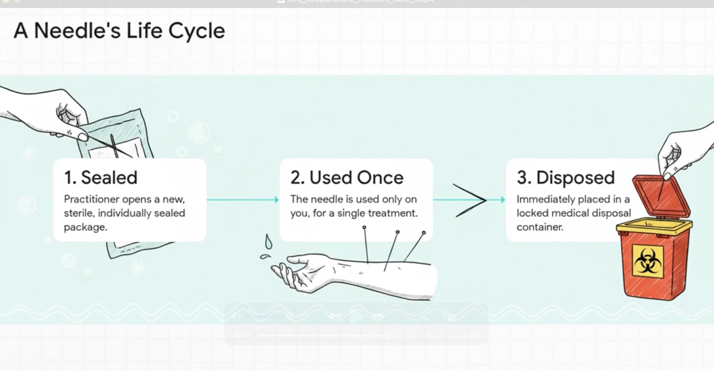 In this blog post and video, I address a common concern about acupuncture: the safety of the needles used during treatment. I explain that, by law, all acupuncture needles in the US must be sterile and labeled for single use only, thanks to regulations set by the FDA since 1996. I also highlight the rigorous training practitioners undergo, including the Clean Needle Technique, to ensure safe practices. I walk you through the entire process, from the opening of a sealed needle package to its immediate disposal in a sharps container. I encourage you to ask your acupuncturist about their safety protocols to feel more confident in your treatment.